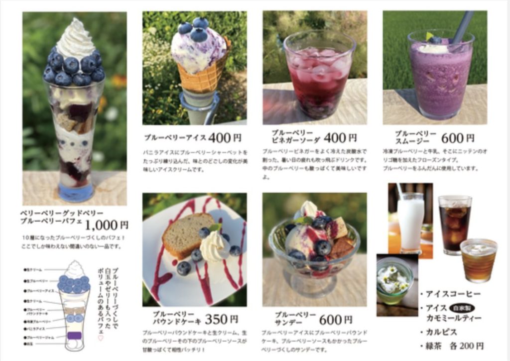 お腹がいっぱいで食べられませんでしたが、ブルーベリーを使ったスイーツも楽しめます♪ 次回訪れた時には、こちらも試して見たいと思います^^