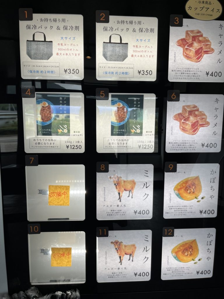 ミルクだけでなくヨーグルトや飲むヨーグルト、プリンやケーキ、(生麺も!)など種類が豊富で悩み🌀ましたが、初めてなので無難にミルクアイスを購入!🍨